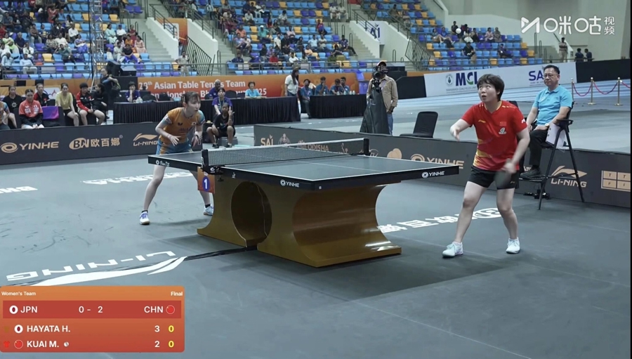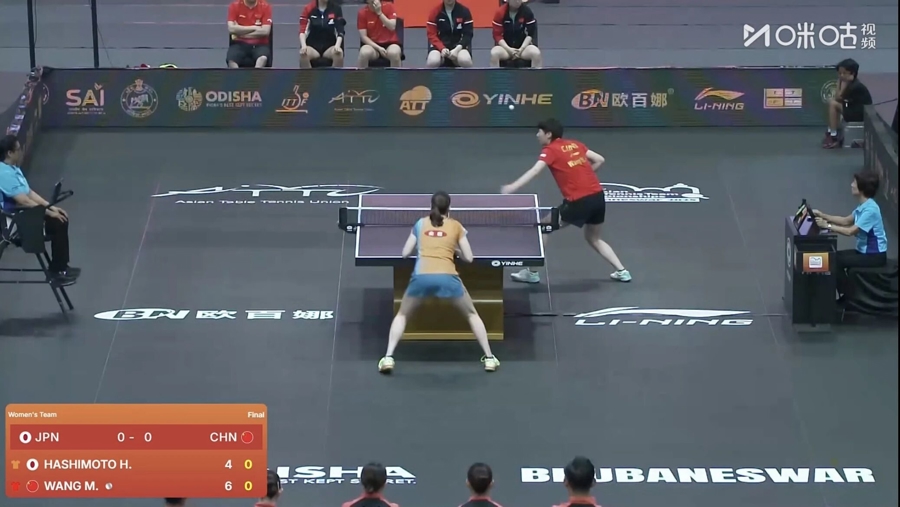 在这一年里,日本女队依然是国乒最强大的竞争对手,但其最强阵容已经有所改变,之前由张本美和、伊藤美诚、平野美宇组成的亚锦赛决赛阵容,换成了桥本帆乃香、张本美和和早田希娜,她们仨是新周期以来对阵中国球员胜率较高的日本选手。国乒的决赛阵容同样换了两员大将,王艺迪、陈幸同此番作为后备力量,取而代之以缺席上届赛事的王曼昱和一年来单打进步明显的蒯曼,头号女单孙颖莎保持了健康而稳定的状态,如今的国乒女队无懈可击。